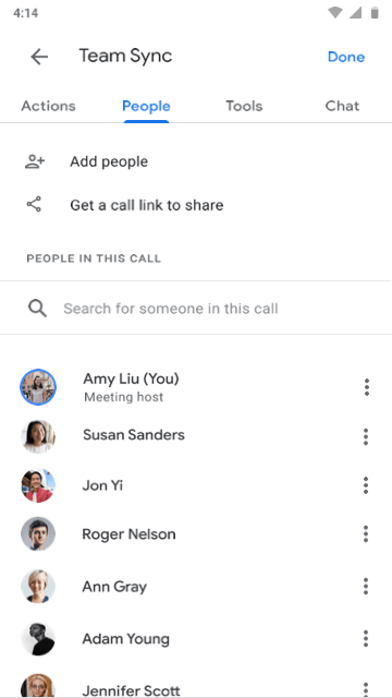 • Dodaj do 25 współgospodarzy spotkania i korzystaj z nowych opcji bezpieczeństwa w Meet