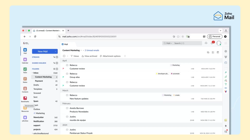 Zalety poczty Zoho Mail:
