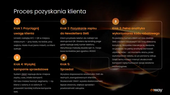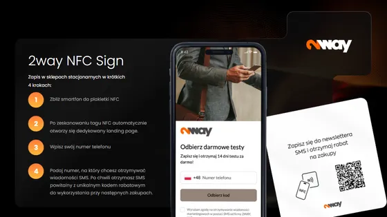 Kluczowe funkcje 2WAY to kody QR, NFC, landing page’e oraz automatyczna komunikacja SMS, dzięki którym: